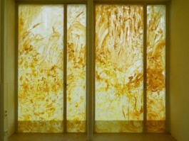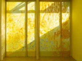 Buttermilk and pigment on glas, 2.6 × 3 m
