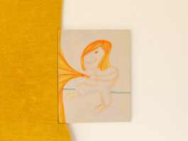 Neither for one’s own gender, nor for what it means here to get a life. One’s own privileges seem incredibly inappropriate. Moving on. I am now in the smallest of the three rooms. Crop spikes are painted onto the window, which gives the incoming autumn light an even warmer tinge and floods the whole room in yellow. The light shines onto my personal favorite: two hands grasping nothingness, touching at the palms. Their point of contact forms an anus. The background is blue.